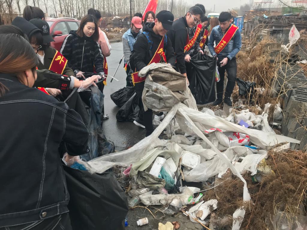 上午8点40分,参加活动人员便早早的到达了小组指定位置集合。到达目的后,同学们迅速投入到活动中进行白色垃圾的清理,同时还对学校周围生活垃圾堆放点、沿街垃圾进行了全面认真地清理打扫,许多长期堆积垃圾的卫生死角都被清扫干净。虽然天上不时的下着毛毛细雨,部分道路又因前几日的大雨泥泞不堪,但每位同学都不怕脏不怕累,活动历经2个多小时,共收拾垃圾几十袋,本次清理活动让校园周边的环境得到了很大的改善。