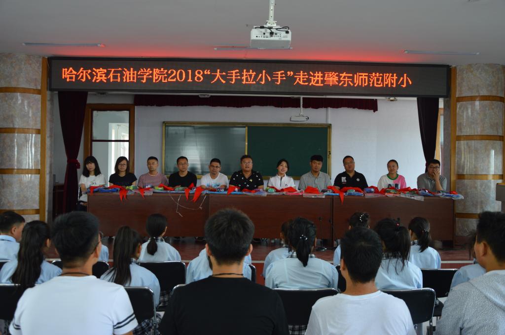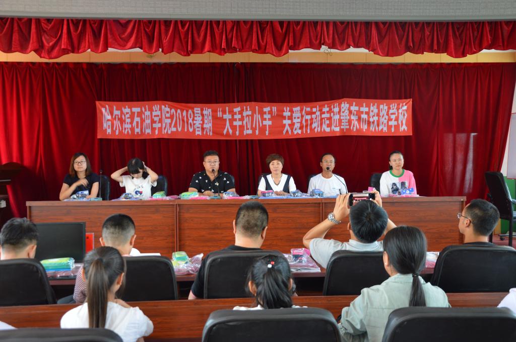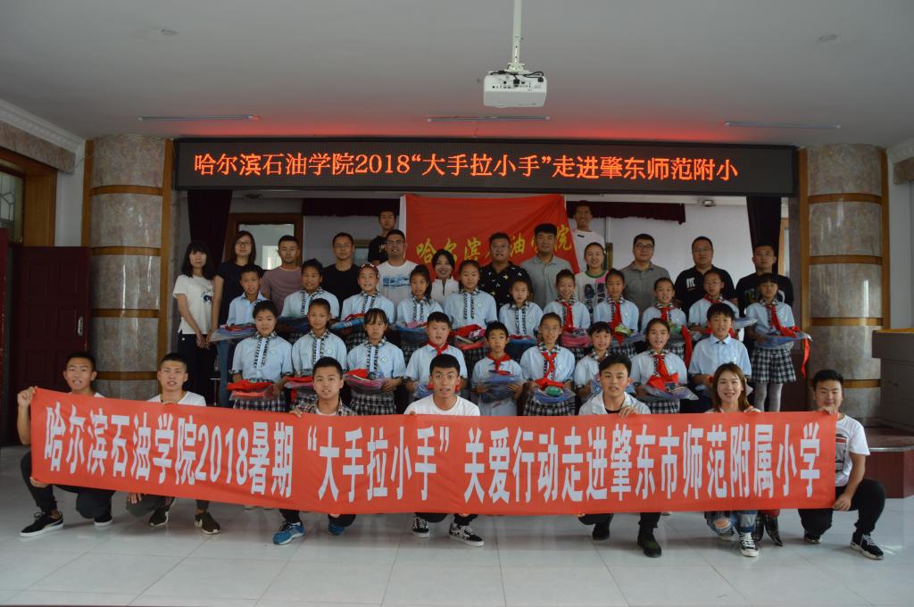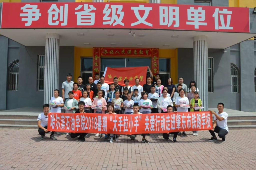 为积极贯彻落实党的十九大精神,根据省委高校工委、省教育厅下发的《关于开展高校大学生与农村留守儿童“大手拉小手”关爱行动实施方案》的部署安排,伟德bv国际体育继2018年1月后,于2018年6月10日再次来到肇东市师范附小、肇东市铁路学校开展“大手拉小手”慰问农村留守儿童的关爱行动。校团委书记王锦石、校团委副书记彭雷、校团委干事冯海龙、肇东市师范附小大队辅导员许咏、肇东市铁路学校党支部副书记韩亚波,副校长孙晓春及各学院团总支书记和伟德官网志愿者代表一行23人参加了此次活动。