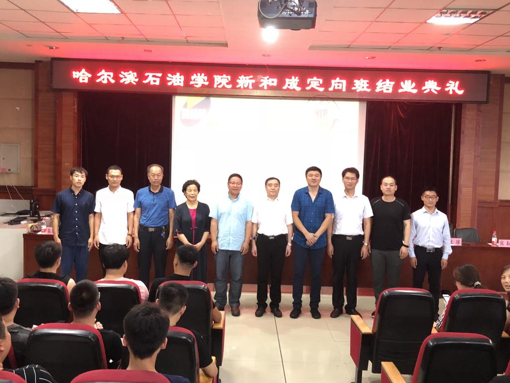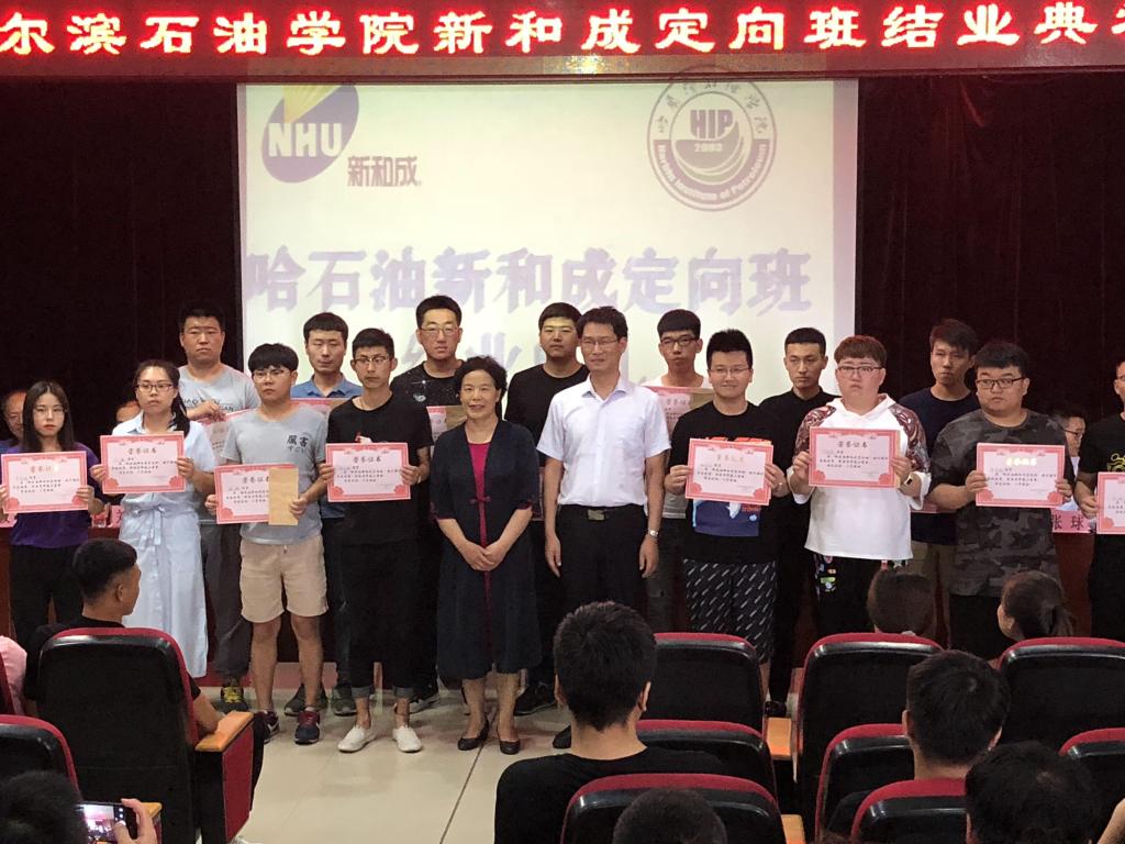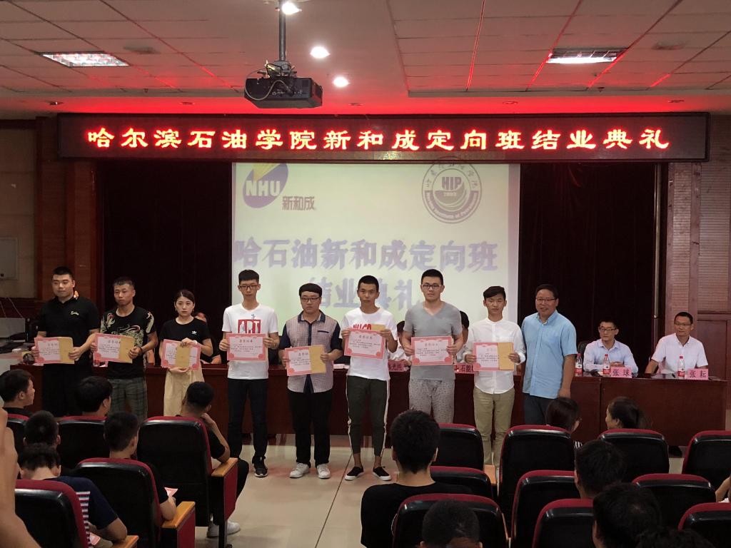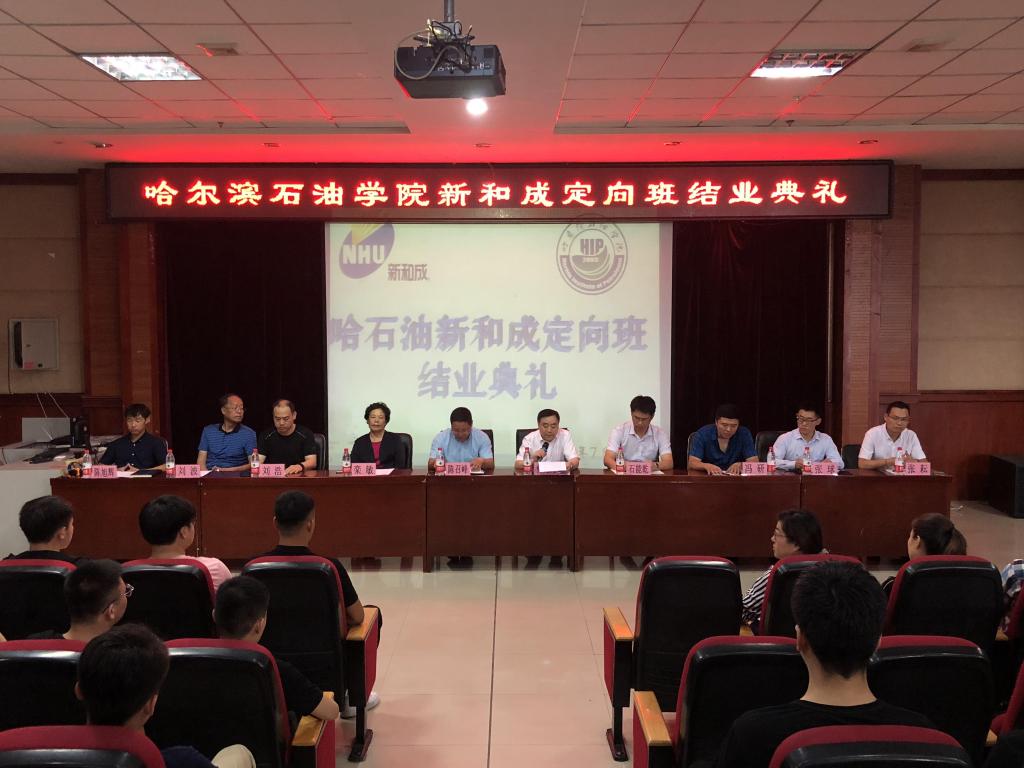 2018年7月11日上午,“新和成定向班”结业典礼在主教518活动室举办。伟德官网党委书记焦光纯、浙江新和成有限公司黑龙江分公司副总经理陈召峰、副校长栾敏、副校长冯研、化工学院院长刘波、校企合作与发展办公室主任张耘、招生就业办副主任陈旭辉以及各有关二级学院的领导、老师出席了本次典礼,陈旭辉同志主持本次典礼。