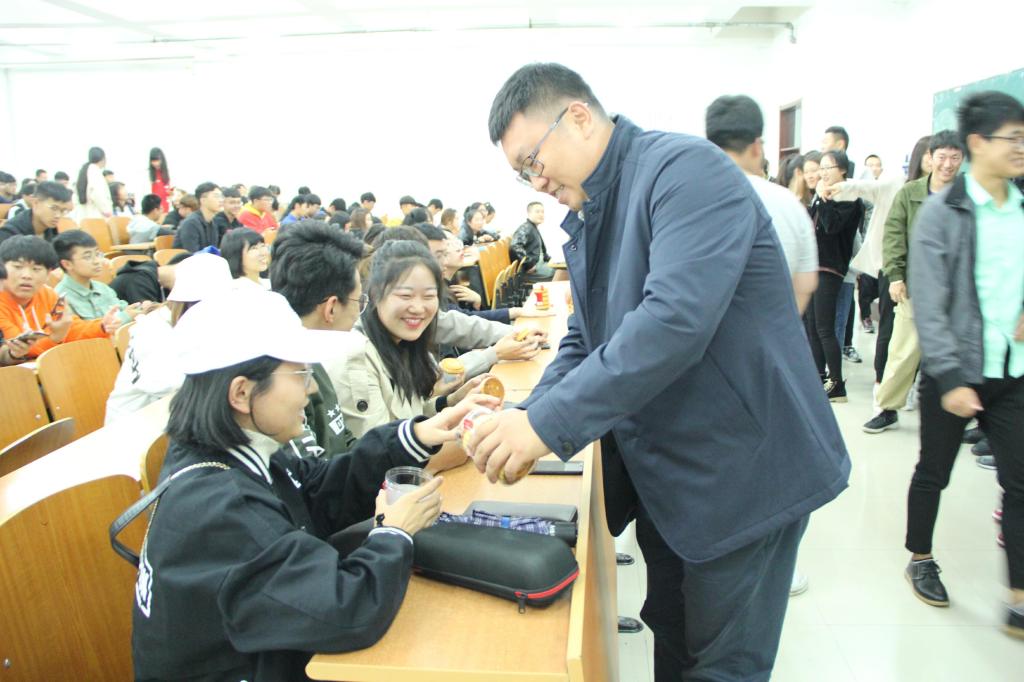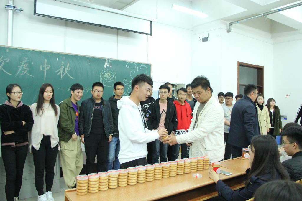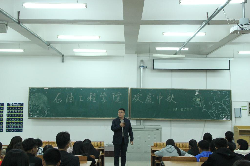 晚会结束后,石油工程学院党总支副书记兼2018级新生辅导员康平军老师,组织全体新生来到主教501教室,康平军代表学院领导和教师,为每名同学发放了一块象征团圆的中秋月饼,送去了学院的温馨祝福,与同学们一起,欢度中秋佳节。