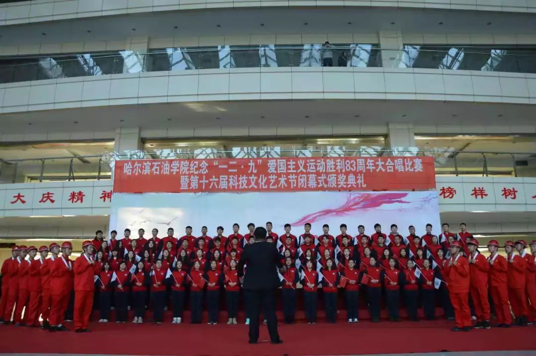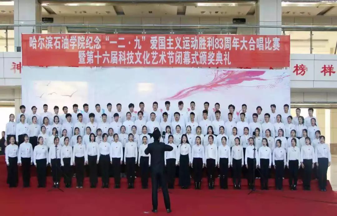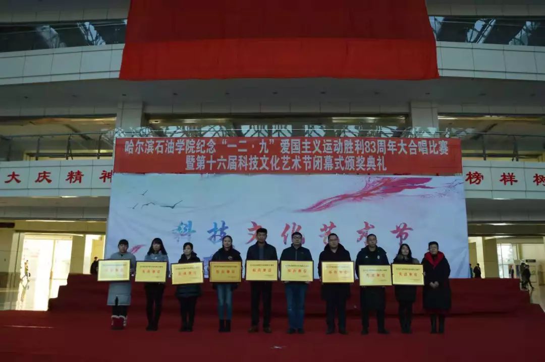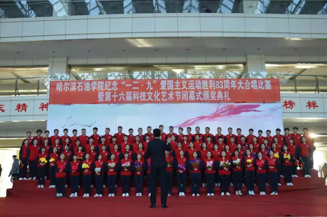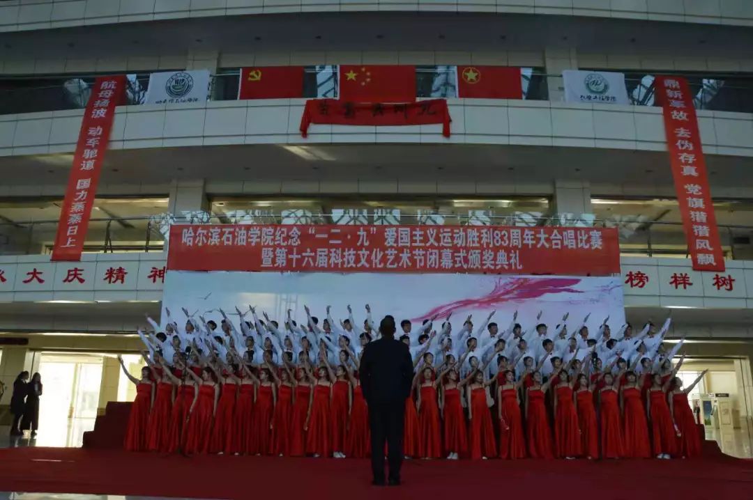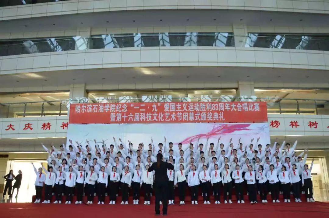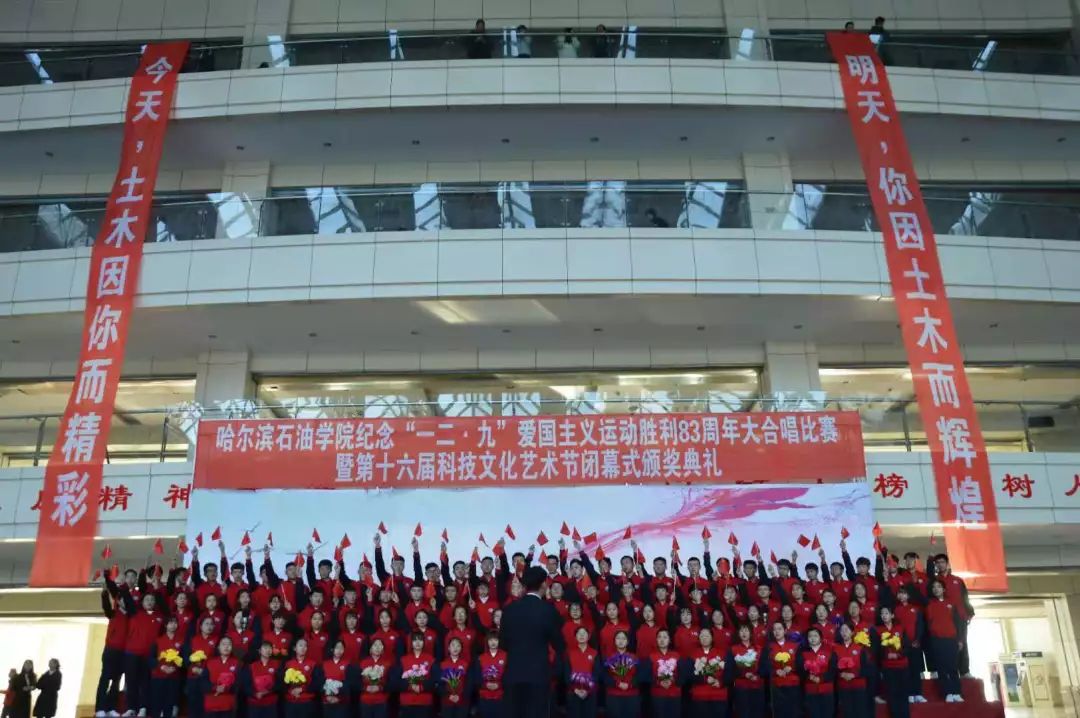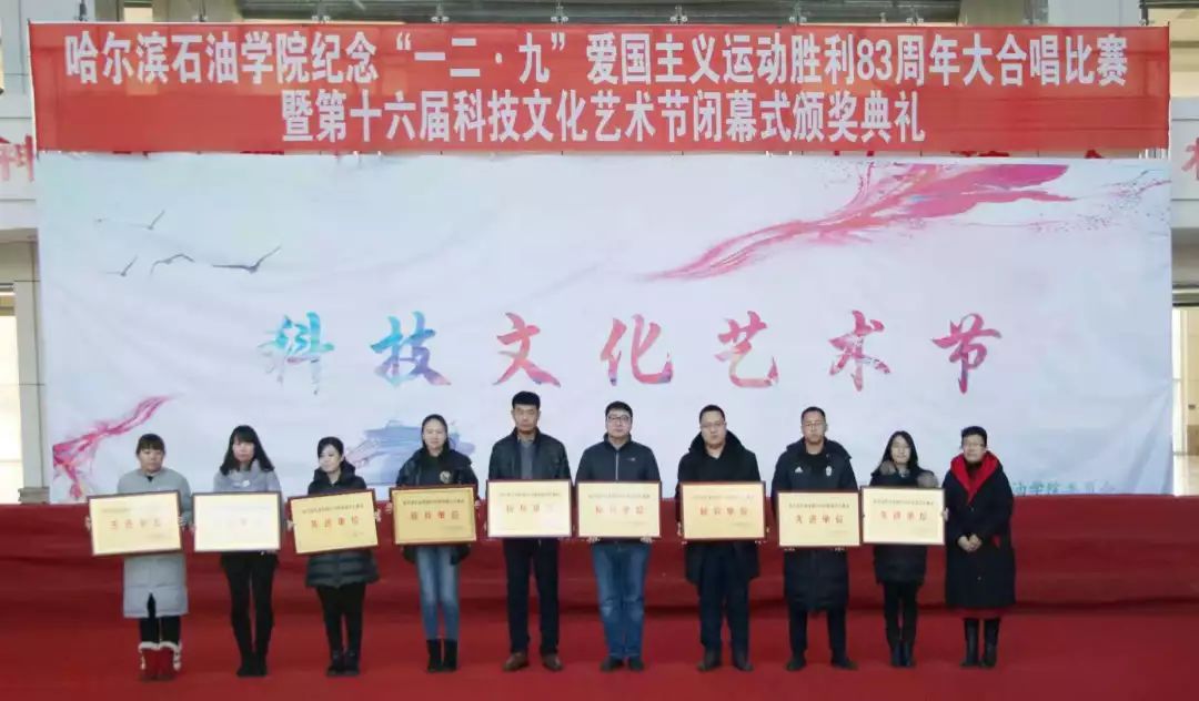 为纪念“一二•九”学生爱国运动胜利83周年,继承和发扬爱国主义精神,鼓励学生树立报效祖国和振兴中华的远大志向,同时为进一步提高伟德官网大学生的爱国意识,激发学生的爱国热情。伟德bv国际体育于2018年12月4日13:00在主教学楼阳光大厅组织了纪念“一二·九”爱国主义运动胜利83周年大合唱比赛暨第十六届科技文化艺术节闭幕式颁奖典礼。伟德bv国际体育副校长杨海清、伟德bv国际体育党委副书记杨宏、伟德bv国际体育副校长徐克非、伟德bv国际体育副校长冯研及各部、处、室,各学院党总支书记、副书记、团总支书记、辅导员和学生干部代表共同参加了此次活动。