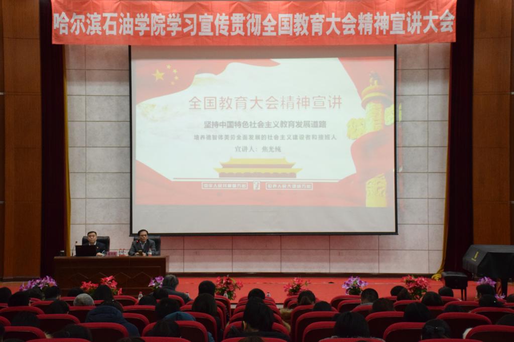 12月18日下午,伟德官网举行学习宣传贯彻全国教育大会精神宣讲大会。全省教育系统全国教育大会精神“百人宣讲团”成员、校党委书记焦光纯解读了今年9月在北京召开的全国教育大会的主要精神。校宣传统战部部长黄光伟主持会议。