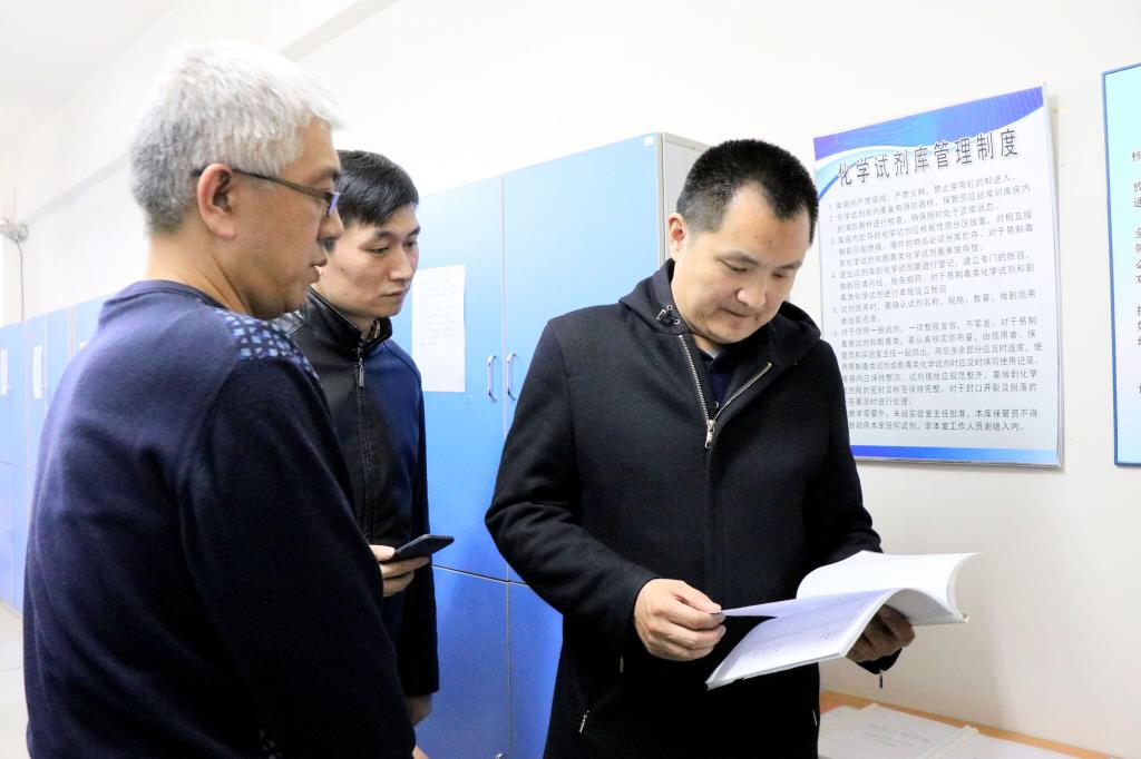 4月1日下午,省教育厅安全检查组一行三人莅临伟德官网,对安全工作进行检查指导。伟德官网副校长唐懋滨,及学校办公室、保卫处、教务处、学工处、后勤集团、宣传统战部、化学工程学院及化学实验室等相关部门负责人陪同检查。