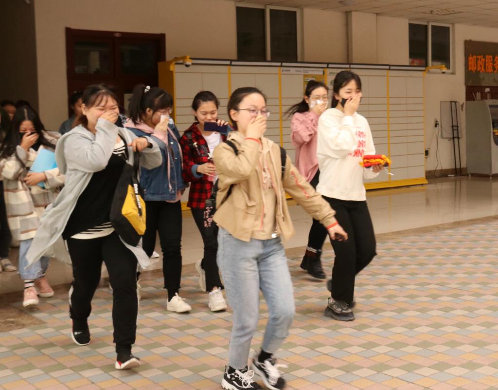 为了全力打造平安校园,坚决遏制季节交替时期火灾高发势头,进一步提高学生的消防安全意识和自防自救能力,外语学院于4月17日在主教119开展了一次消防安全疏散演练。