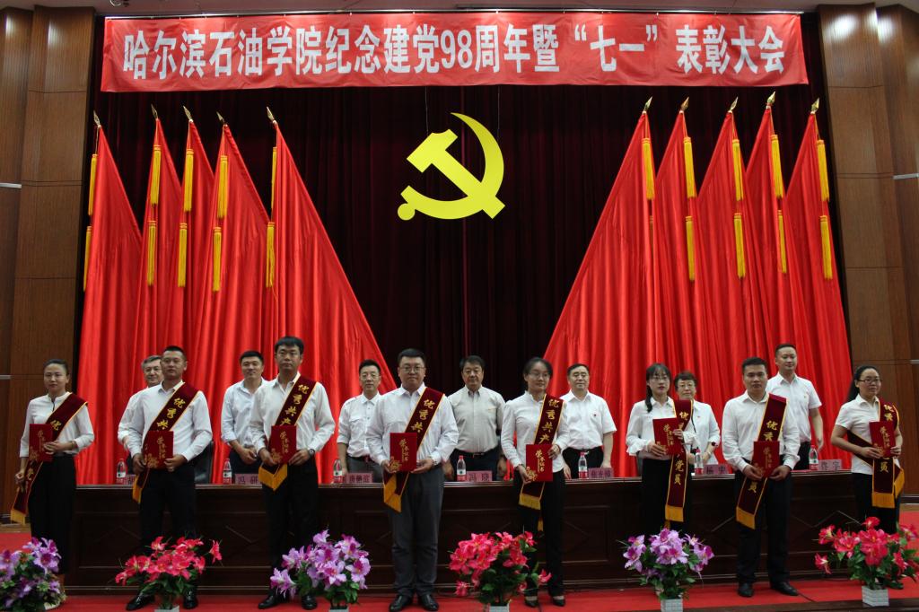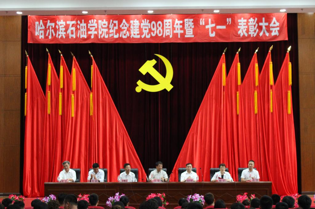 为庆祝中国共产党成立98周年,重温党的光辉历程,弘扬党的优良传统,回顾总结一年来伟德官网党建工作取得的新进展、新成果,表彰一批在学校事业发展和党建工作中表现突出的先进典型,6月28日,伟德bv国际体育庆祝建党98周年暨“七一”表彰大会在图书馆报告厅隆重举行。校党委副书记、校长冯晓,党委书记焦光纯,党委副书记、副校长杨宏,副校长唐懋斌,副校长冯研,副校长佟宇,教务长胡文以及全体教职工、学生党员和部分入党积极分子参加会议。党委副书记、副校长杨宏主持会议。