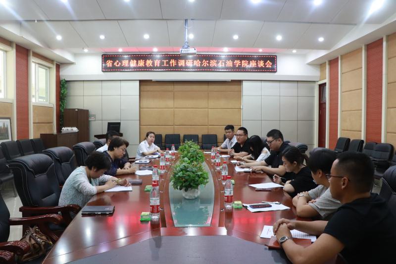 调研组由黑龙江省教育厅思想政治教育处秦靖然、哈尔滨医科大学学工部部长周艳娟、哈尔滨工程大学学工部副部长丛建伟、黑龙江生态工程学院心理健康中心主任孙桂君、哈尔滨理工大学心理健康中心主任吕彬江五位老师组成。伟德bv国际体育理事长谢永利、校长冯晓、党委书记焦光纯、副书记副校长杨宏、学工处处长宁晶等热情接待了调研组,心理健康教育与咨询中心主任彭雷、心理中心专职教师赵全宇、王威、袁爽全程接待了调研组实地考察、座谈和深度访谈工作。