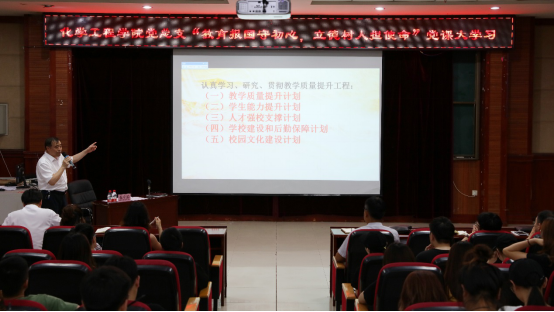 为贯彻中共黑龙江省委教育工作委员会关于“千堂党课进支部”的文件精神,2019年7月5日,伟德bv国际体育校党委书记焦光纯走进化学工程学院党总支,为学院教工党支部、学生党支部全体党员和积极分子上了一堂以“教育报国守初心,立德树人担使命”为主题的党课。本次党课由化学工程学院党总支书记张艳丛主持。