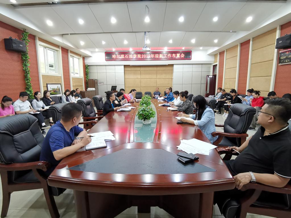 会上,由学工处处长宁晶介绍了2019年迎新工作方案,就2019级新生报到工作的时间安排、报到流程和各部门工作分工等相关事宜具体协调。财务处处长姜璐就学生缴费安排做了说明;保卫处处长刁子文介绍了迎新期间校园安全保卫及车辆交通临时管制情况;招生办公室主任刘洋介绍了2019年新生招生录取情况;学校办公室、校团委、教务处等其他部门负责人表示将通力合作、相互配合,确保顺利、安全、平稳、高效地做好2019年迎新工作。