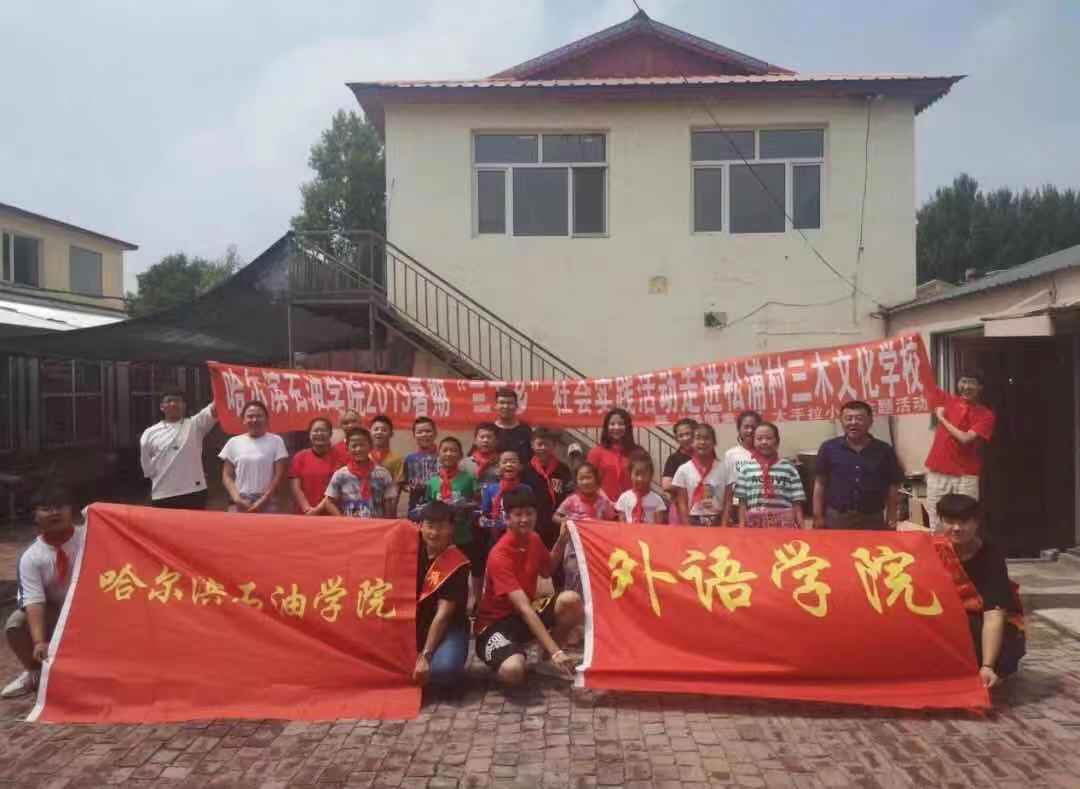 为积极贯彻习近平新时代中国特色社会主义思想,以实际行动助力精准扶贫,服务乡村振兴战略,进一步深入落实中央宣传部、中央文明办、教育部、共青团中央、全国学联联合下发《关于开展2019年全国大中专学生志愿者暑期文化科技卫生“三下乡”社会实践活动的通知》的文件精神,2019年7月16-18日在伟德bv国际体育外语学院党总支副书记孙晓萍的带领下一行十二名志愿者,来到了哈尔滨市松浦区松浦村三木学校,开展了以“情暖童心,大手拉小手”为主题的“三下乡”社会实践活动。