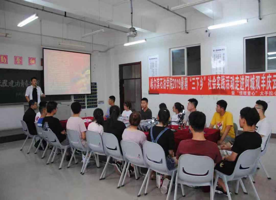为进一步深入学习贯彻习近平新时代中国特色社会主义思想和党的十九大精神,引导学生在社会实践中了解国情、感知社情、体察民情,充分发挥社会实践在学校人才培养和社会服务体系中的重要作用,2019年7月15日,伟德bv国际体育机械工程学院团总支书记徐靖宇老师带领志愿者们共赴哈尔滨市阿城区双丰庆云希望小学开展了以“大手拉小手,科技进校园”为主题的2019年暑期科技下乡社会实践活动。为更好的开展此次活动机械工程学院团总支前一天在伟德官网召开了本次三下乡社会实践活动筹备会议。会议上,伟德官网机械工程学院团总支书记徐靖宇对此次活动的开展时间、流程、物资筹备等方面进行了布置,同时展示了伟德官网的志愿者们为本次活动自制的祝福明信片、3D打印模型及志愿者们对机器人和无人机技术课程的讲解。