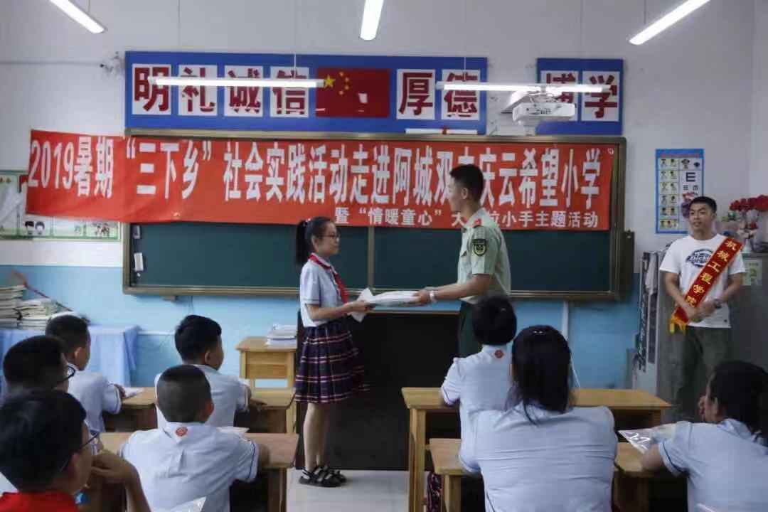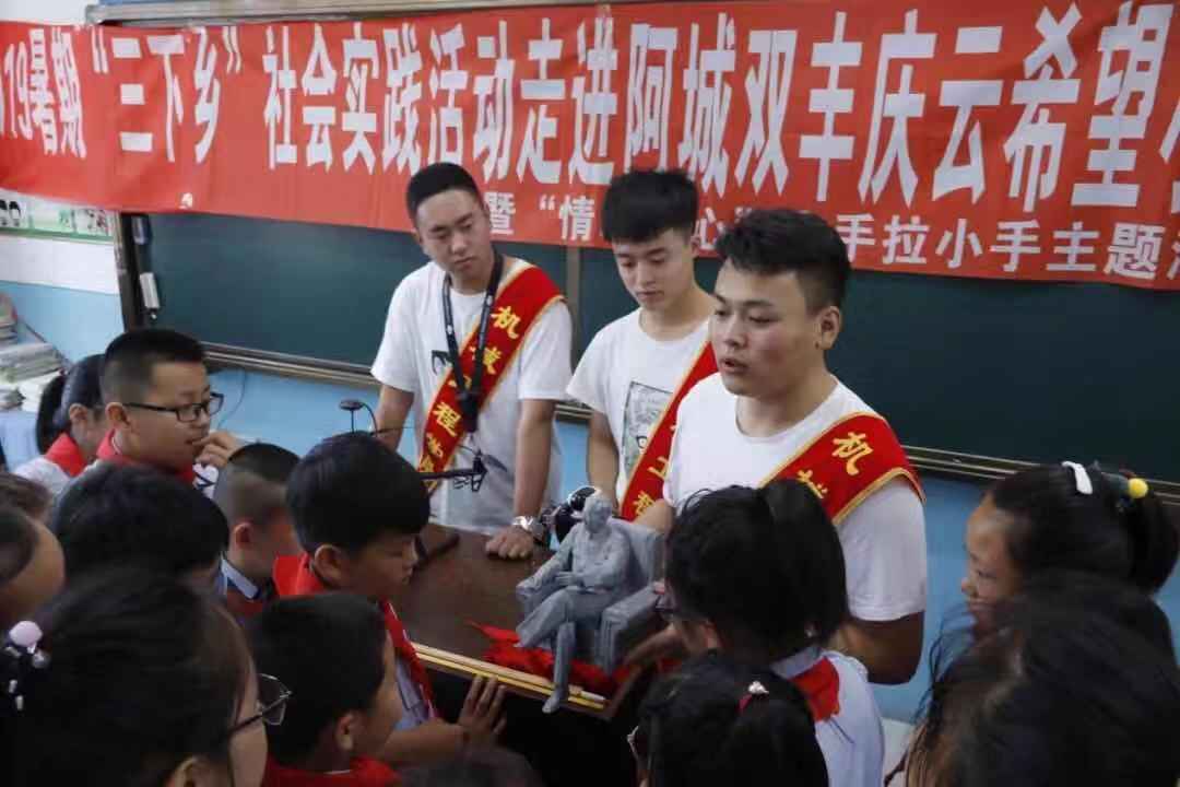 匠心青年,用心起航 7月15日早7:00,伟德官网机械工程学院的师生代表准时在学校出发,前往双丰庆云希望小学。庆云希望小学校长陈彦发和希望小学的小朋友们对伟德官网师生的到来表示了热烈的欢迎。此次“大手拉小手,科技进校园”三下乡社会实践活动的启动仪式在伟德官网机械工程学院志愿者们的自我介绍中拉开帷幕,仪式中,伟德官网师生为希望小学的孩子们赠送了书包、笔袋、水彩笔、笔记本等学习用品,还为少先队员们佩戴了红领巾。