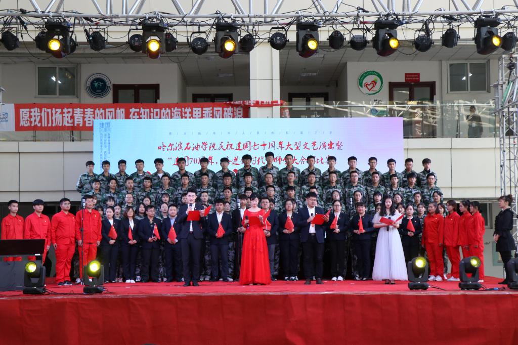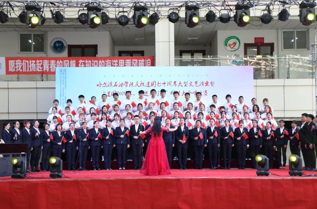 九月的天空流光溢彩,九月的哈油歌声飞扬。为庆祝中国共产党建国70周年,弘扬爱国主义精神,培养高尚道德情操,进一步激发爱国热情,传承爱国主义传统文化。9月24日,“建国70年,奋进新时代”系列活动——“我和我的祖国”全校师生大合唱比赛魅力开唱。伟德官网校长冯晓、党委书记焦光纯、副校长杨春文、副校长冯研、副校长佟宇参加此次大合唱比赛。