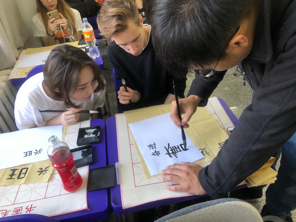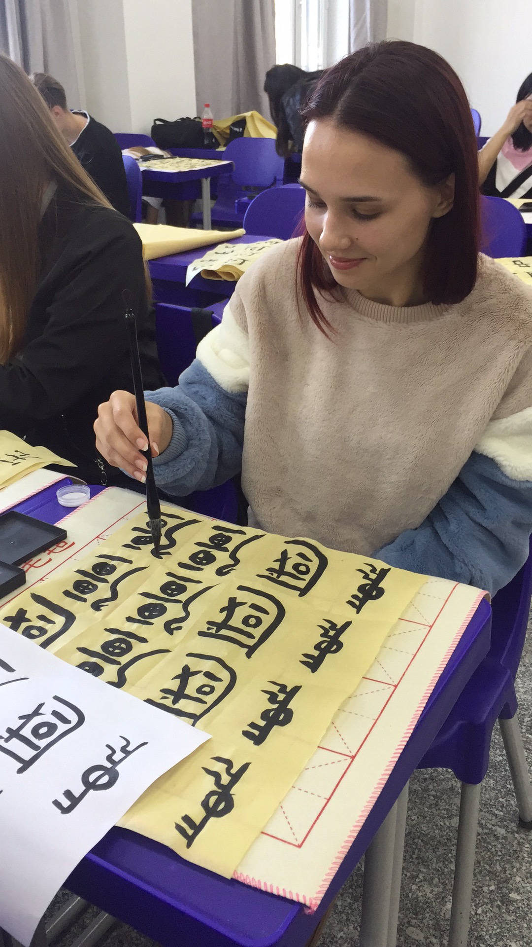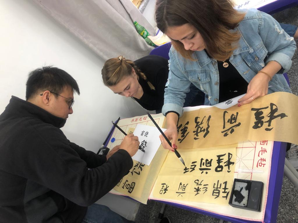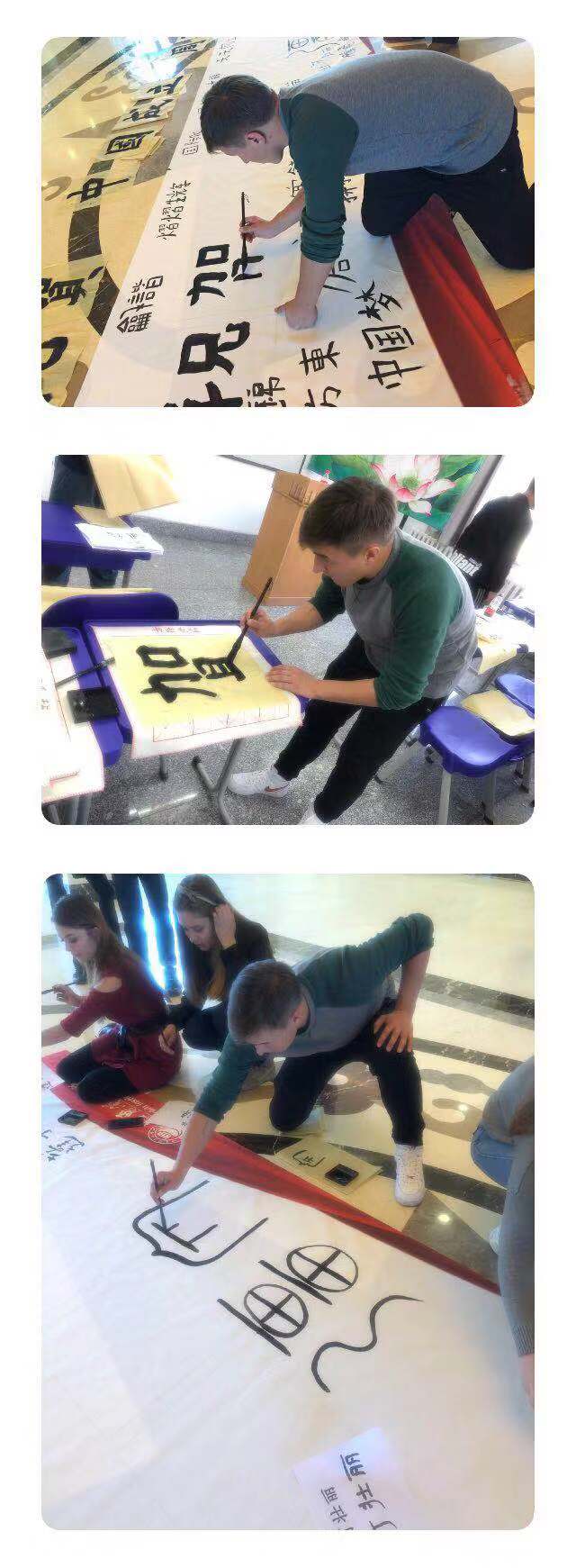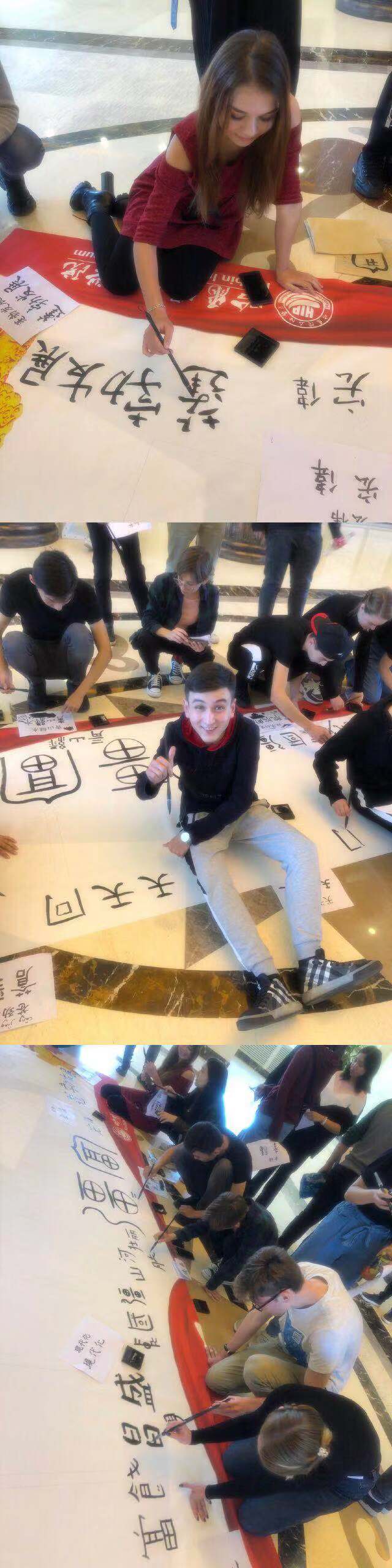 On September 28th, the teachers led 37 students from Russia, Kazakhstan, Mongolia, Thailand and other countries to visit the “Historical Calligraphy Engraving Exhibition of the 70th Anniversary ofPRCFounding in Heilongjiang Province” held at the Harbin Art Museum. Chinese calligraphy has a deep meaning between square inches. The tip of the pen reveals the philosophy of being a human being, and it also contains the spirit of Chinese culture. During theactivity, Teacher Xu Jian explained the origin of Chinese characters, introduced Chinese famous calligraphers and calligraphy skillstoforeignstudents. Everyone also showed their calligraphy works "Celebrate the 70th Anniversary of the Founding of New China" in the museum.