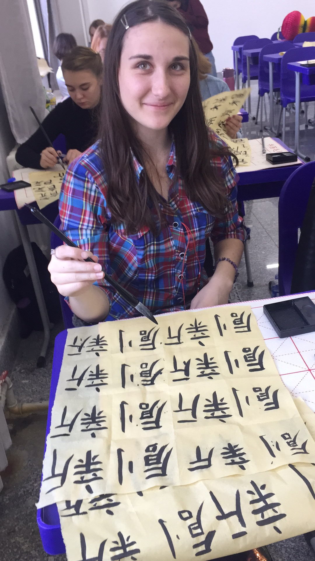 “我一直以来就很喜欢中国文化,通过一边写字一边了解到它的含义,观看和练习书法是我认识中国传统文化的一个重要方式,我学习写下了‘祝贺新中国成立70周年’这几个字,非常棒。”来自俄罗斯的留学生迪玛说道。