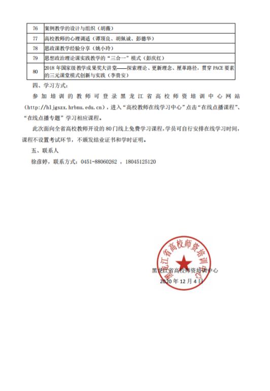 黑龙江省高校师资培训中心下发了《关于开展高校教师线上课程学习的通知》(高师师培字[2020]15号)文件(详见附件1),现转发给你们。学习安排如下: