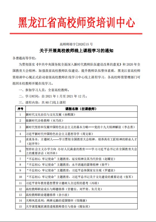 关于开展黑龙江省高校师资培训中心高校教师线上课程学习的通知