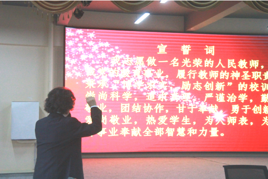 最后由总督学于惠力教授带领全体新入职教师进行入职宣誓。全体教师起立,右手握拳齐眉,精神饱满,声音洪亮。现场气氛庄重严肃,责任感、使命感油然而生。