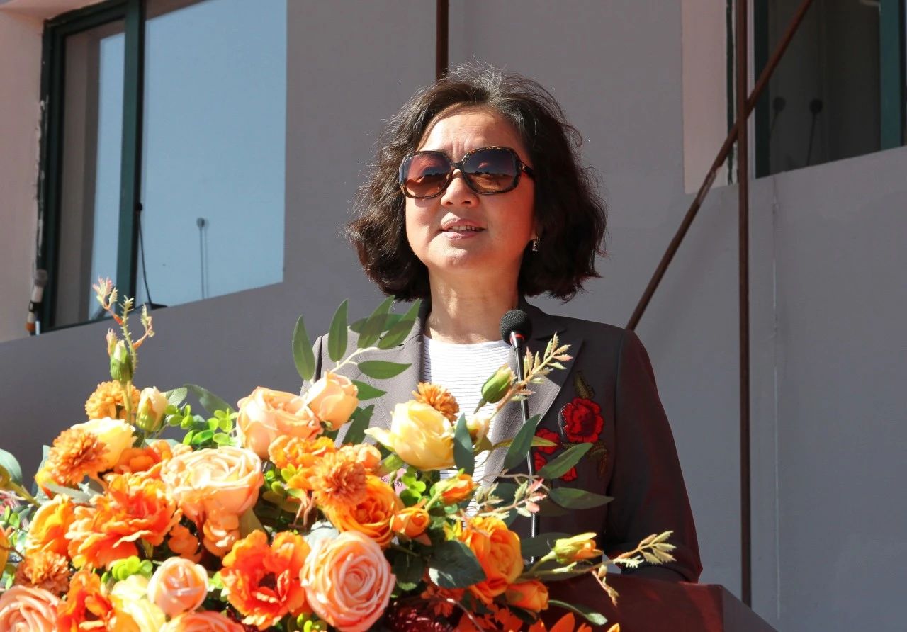 校长柴维斯发表讲话。她首先代表学校党政领导及全校师生员工向全体2023级新同学表示热烈的欢迎,向全体教官表示衷心的感谢!柴校长对新生提出三点希望与嘱托:一是要志存高远。她希望全体新生把个人成长融入谱写新时代发展之中,把理想信念融入实现中华民族伟大复兴事业之中,与时代同步伐、与祖国共命运、与人民齐奋斗,才能成就一番事业,更好地实现人生价值。二是要博学笃行。她希望大家走进生活,走进实践,将“有字之书”和“无字之书”结合起来,在博万物中广其识,在涉世道中明其理,更好地汲取智慧、丰富思想、淬炼精神,成为“胸中有丘壑,眼里存山河”的新时代青年。三要强健体魄。她希望大家从碎片化信息中抽身,从长时间游戏中抽离,去享受阳光的灿烂,去享受汗水的挥洒,在参与体育运动的过程中,增强体质、健全人格、锤炼意志,成长为国家栋梁之才。她最后寄语新生不负韶华、奋发向上,遵循学校“博学求实、励志创新”的校训,光大“承大庆精神立德,以铁人榜样树人”的校风。做一个爱国奉献的哈油人、一个砥砺奋进的哈油人,一个追求卓越的哈油人,不断超越自我,在哈石油书写无愧于时代、无愧于国家、无愧于人民、无愧于自己、无愧于未来的靓丽青春,成就精彩的人生。