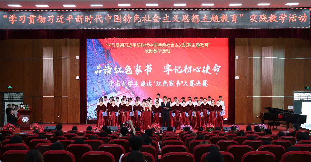 一封家书,寄一段党史;一缕感怀,抒革命深情。在艺术与教育学院师生合唱的歌曲《向往》中,大赛拉开帷幕。参赛学生化身杨开慧、赵一曼、林觉民、史砚芬、夏明翰等革命先烈,将一封封家书赋予灵魂,时而激昂、时而低沉,把对亲人、对家、对党和祖国的感情表达得淋漓尽致,也向大家重现了革命英雄艰苦奋斗、牺牲奉献、开拓进取的伟大精神。全场观众跟随选手领悟这些饱含深情的信笺,接受了一次红色精神洗礼,真切感悟先烈初心,厚植家国情怀,凝聚奋进力量,践行时代使命。