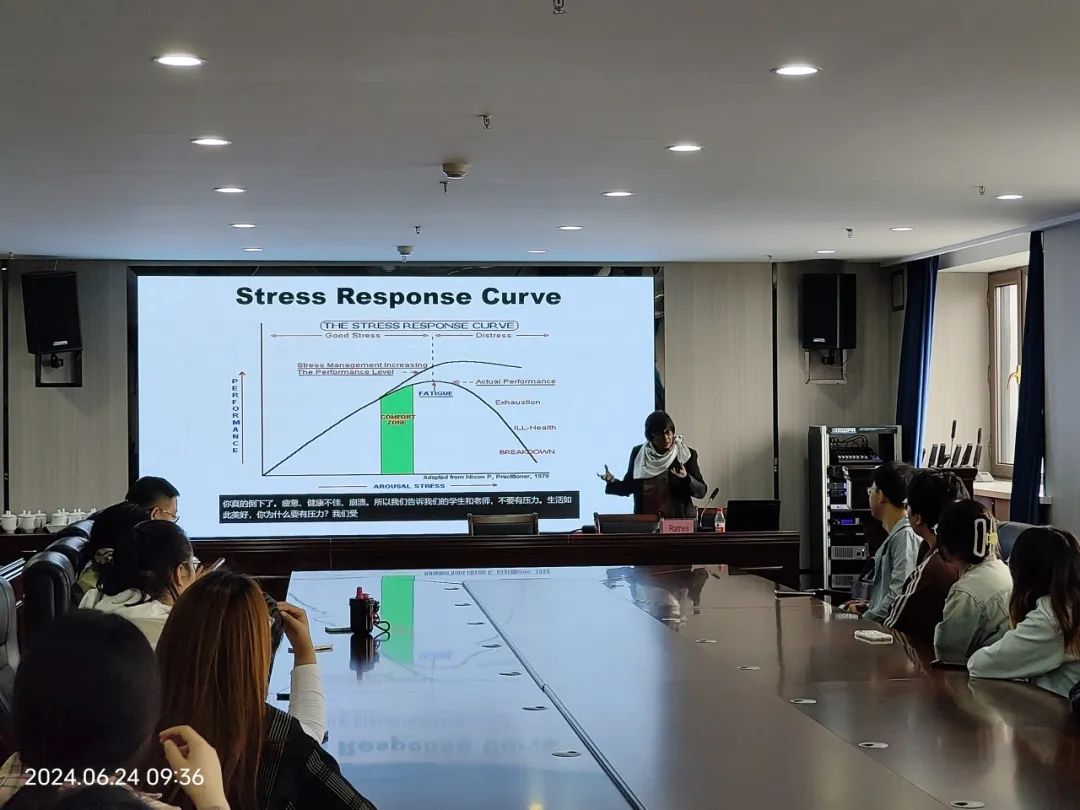 聘任仪式结束后,Ratnes教授为外国语学院英语系师生做主题讲座。讲座从学生如何确定压力来源、学术研究时要如何应对压力等方面进行了指导。在问答环节,Ratnes教授也向与会人员分享了自己从事学术研究的经验与心得。