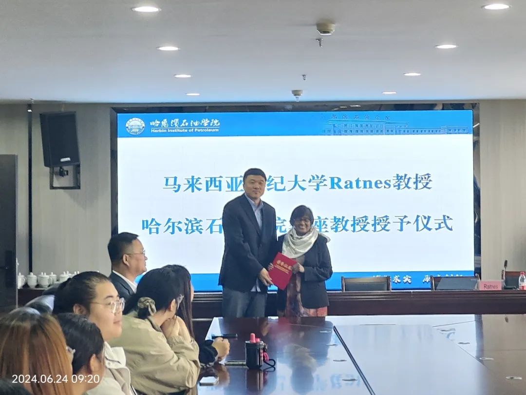 为推进伟德官网学科建设、提升人才培养质量,6月24日上午,伟德官网在综合楼1515会议室举行客座教授聘任仪式,聘任马来西亚世纪大学Ratnes教授担任伟德官网客座教授。党委副书记、副校长冯研,副校长佟宇,国际教育学院院长周瑞,外国语学院英语系主任王兴刚,国际教育学院教师王璐参加会议。党委副书记、副校长冯研为客座教授颁发聘书。