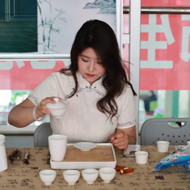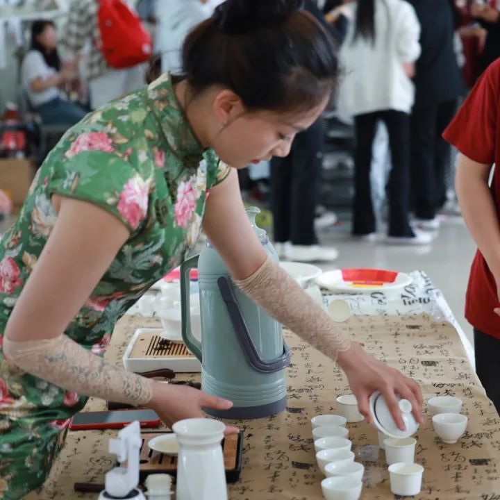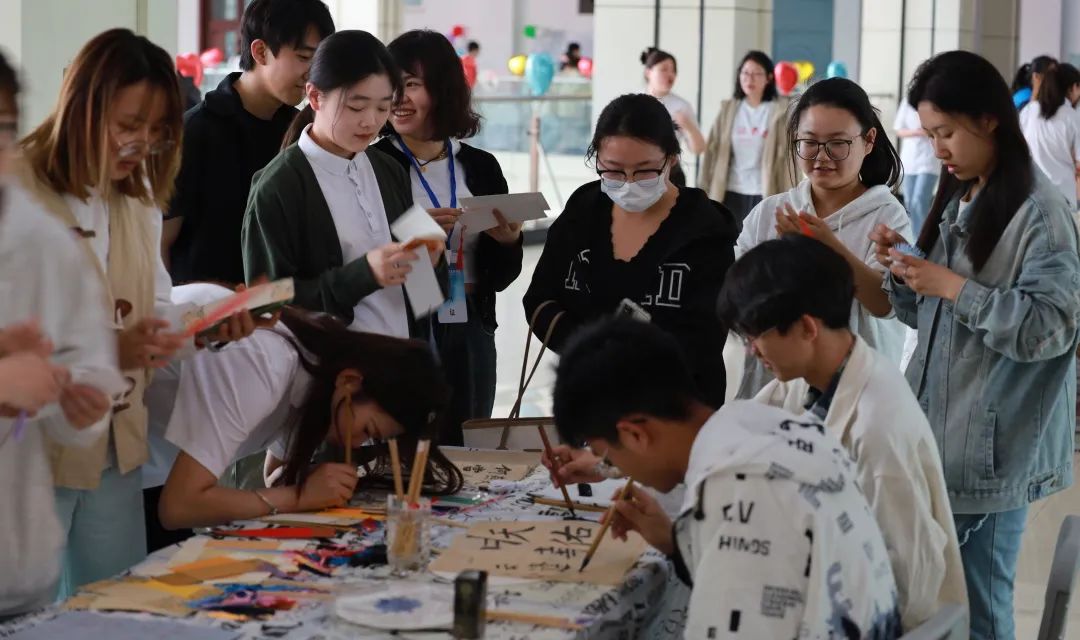 同学们亲身体验书法笔墨、中国结艺、汉服妆造、茶艺冲泡等文化瑰宝,沉浸式感受中华优秀传统文化的深厚底蕴。汉服体验专区,备有衣袂翩翩、宛若惊鸿的华美汉服,邀世界友人共品悠悠古韵,一睹盛世芳华。传统手工艺专区,手绘团扇及信笺、剪纸、绒花、黏土、编五彩绳等精巧工艺蕴含着中华民族的工匠精神和美学意蕴。