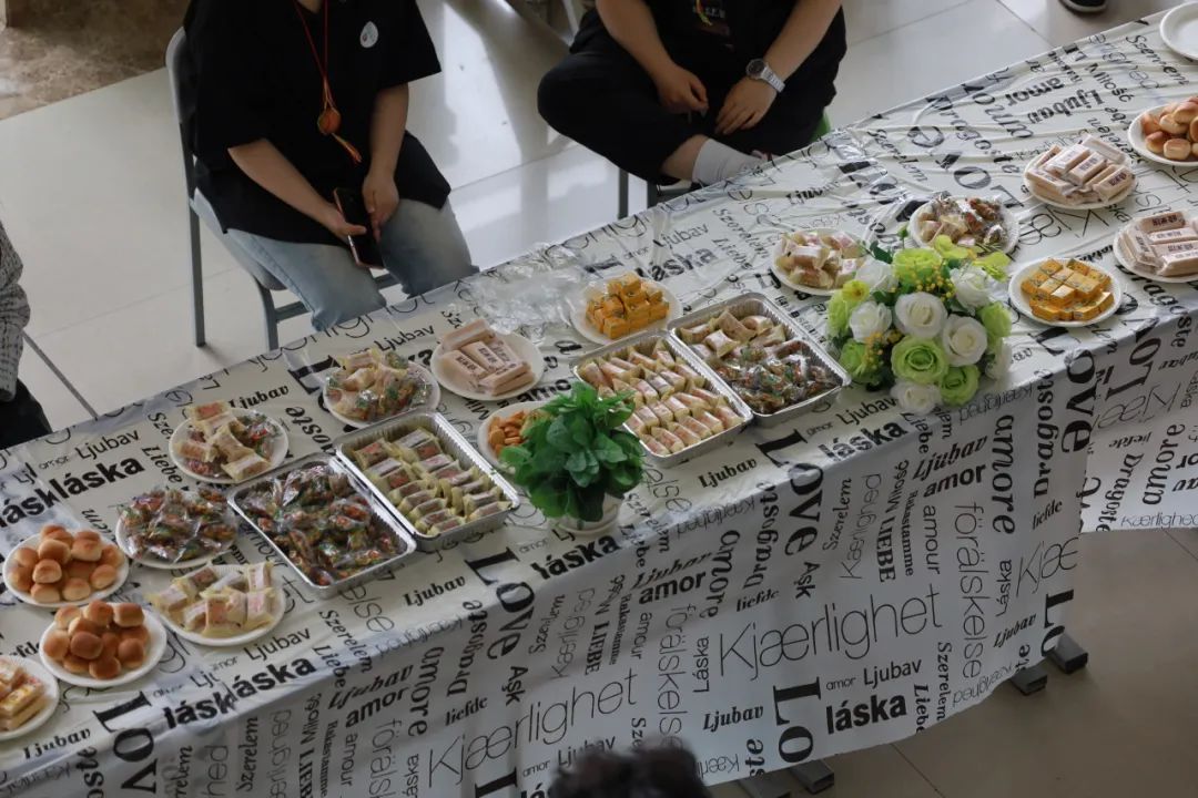 在文化体验区中,首先映入眼帘的是五彩斑斓的各式菜肴。美食并不局限于传统的菜式,文化节上除了那些经典的中华美食,也有西方许多精巧可爱的甜点。在美食摊位现场,同学们不仅可以品尝到各式佳肴,还能参与到制作过程中。包粽子、煮汤圆、煮鸡蛋、做西点、品咖啡……在老师的指导下,体验着劳动的乐趣,这种亲身的参与感,让同学们更加深刻地理解劳动的意义和价值。