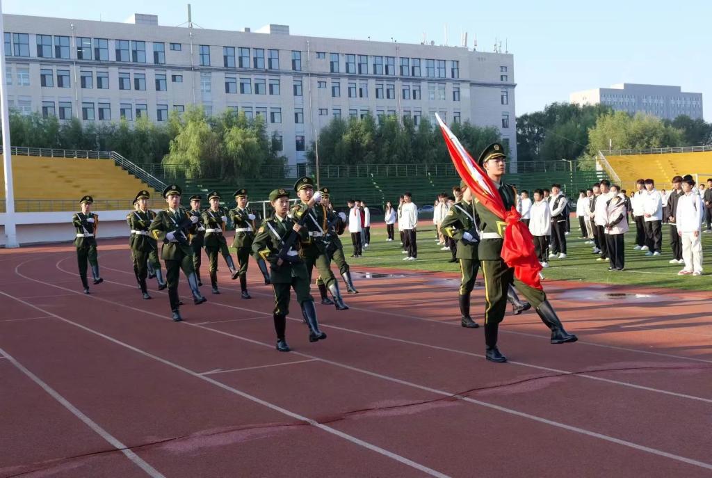 仪式开始,国旗护卫队步伐铿锵、身姿挺拔,将国旗护送至升旗台。雄壮激昂的国歌响起,擎旗手振臂一挥,鲜艳的五星红旗迎着朝阳冉冉升起、迎风飘扬。
