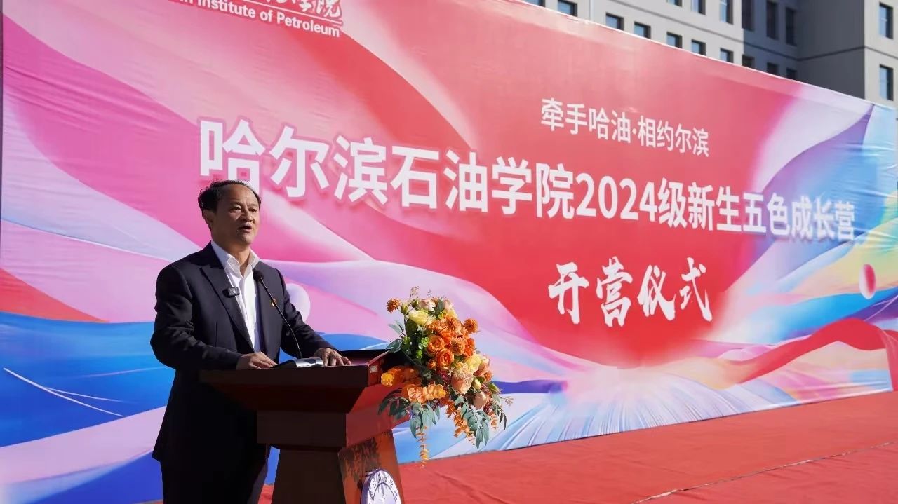 新生五色成长营营长、党委书记林立民讲话。他表示,读万卷书,行万里路,“牵手哈油 相约尔滨”五色成长营,是一次红色之旅、文化之旅、科技之旅、劳动之旅和冰雪之旅,通过活动可以助力新生全面认识了解大美龙江、喜欢哈尔滨,融入哈石油。他希望广大新生通过活动,在行中学,在学中思,在成长营中,追寻对生活的热爱,对未知的向往,将知识的点滴积累,转化为学习、生活的经验和能力,坚定理想信念,刻苦学习、健康成长,为强国建设贡献智慧和力量。最后林立民宣布:伟德bv国际体育2024级新生五色成长营正式开营!