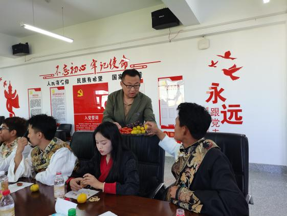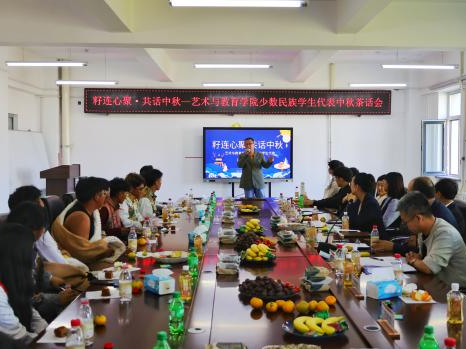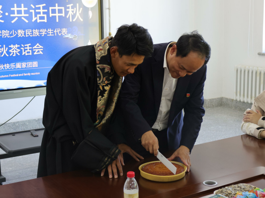 校领导带来中秋团圆月饼,学院精心准备了水果、零食、清真月饼,各位领导、老师为同学们送上中秋的祝福,并与藏族学生仁青旺杰一同切月饼,分发给在场领导、同学。校领导与同学们一同载歌载舞,音乐表演专业孔维克老师一曲高原红,将气氛推向高潮。