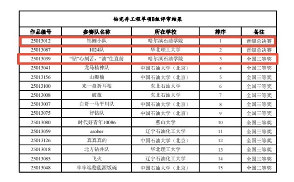 北部赛区竞赛上,哈油的6支队伍与“双一流”中国石油大学(北京)、中国地质大学(北京)同台不落下风——5支斩获国家级三等奖,1支以小组第一名的成绩晋级全国总决赛!