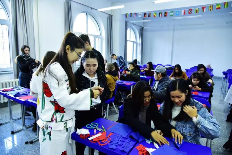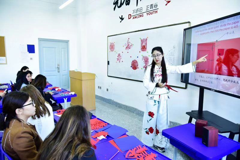 On 18th October, a traditional cultural course began at the College of International Education. It was paper-cut, which was a traditional and widespread art form. The art of paper-cut embodies the intelligence of Chinese People and Aesthetic preference. At first, students from different countries were curious about this. With the teacher's explanation of paper-cut, the students began to show great interest about it, but everything was difficult at the beginning and the students were all perplexed. However, in order to better understand the Chinese culture, they finally overcame one obstacle after another under the careful instruction of the teacher and did it better. The students were smiling with their beloved paper-cut in their hands.