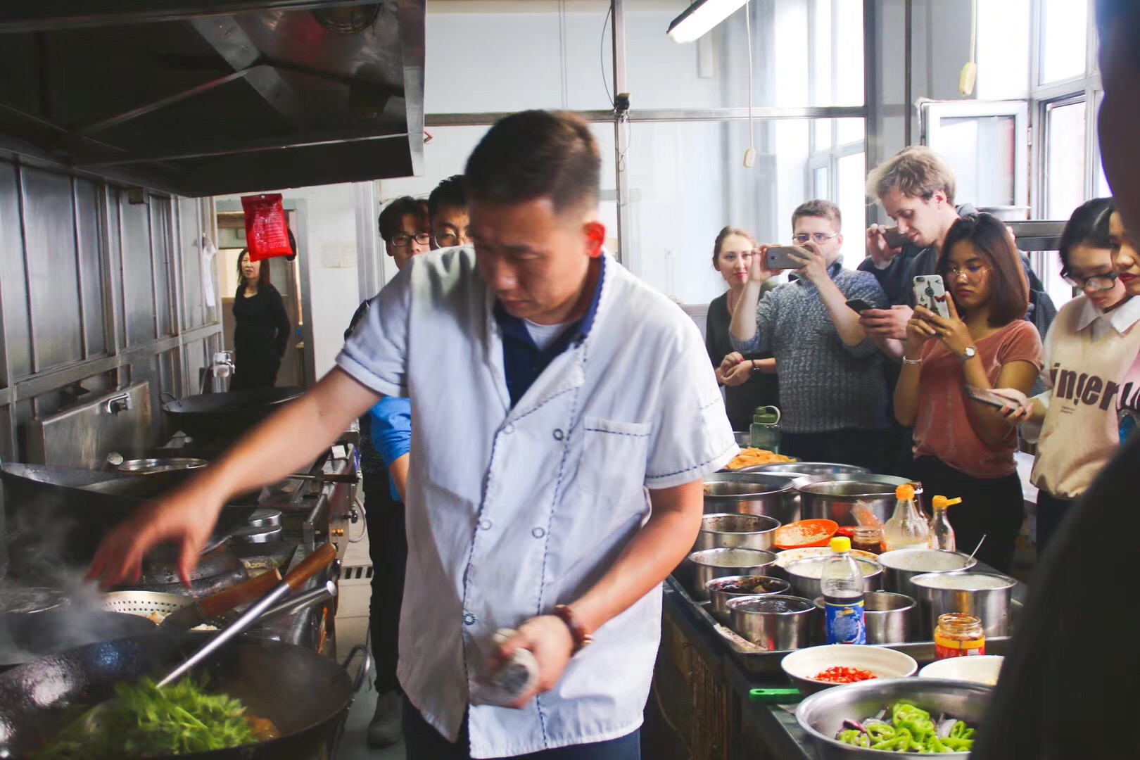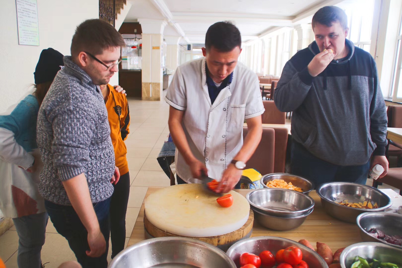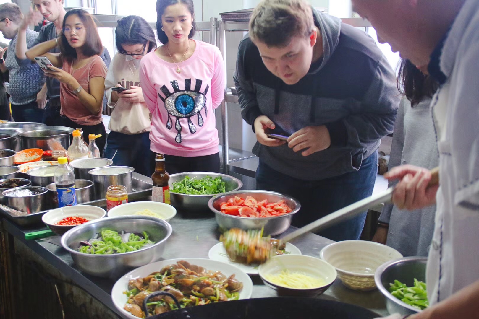 10月5日,伟德bv国际体育2018级全体留学生到学院餐厅参加“中华美食文化体验”活动,来自俄罗斯、泰国、哈萨克斯坦及蒙古等国家的留学生们在专业烹饪老师的带领下,上了一堂别开生面的中国饮食文化体验课。