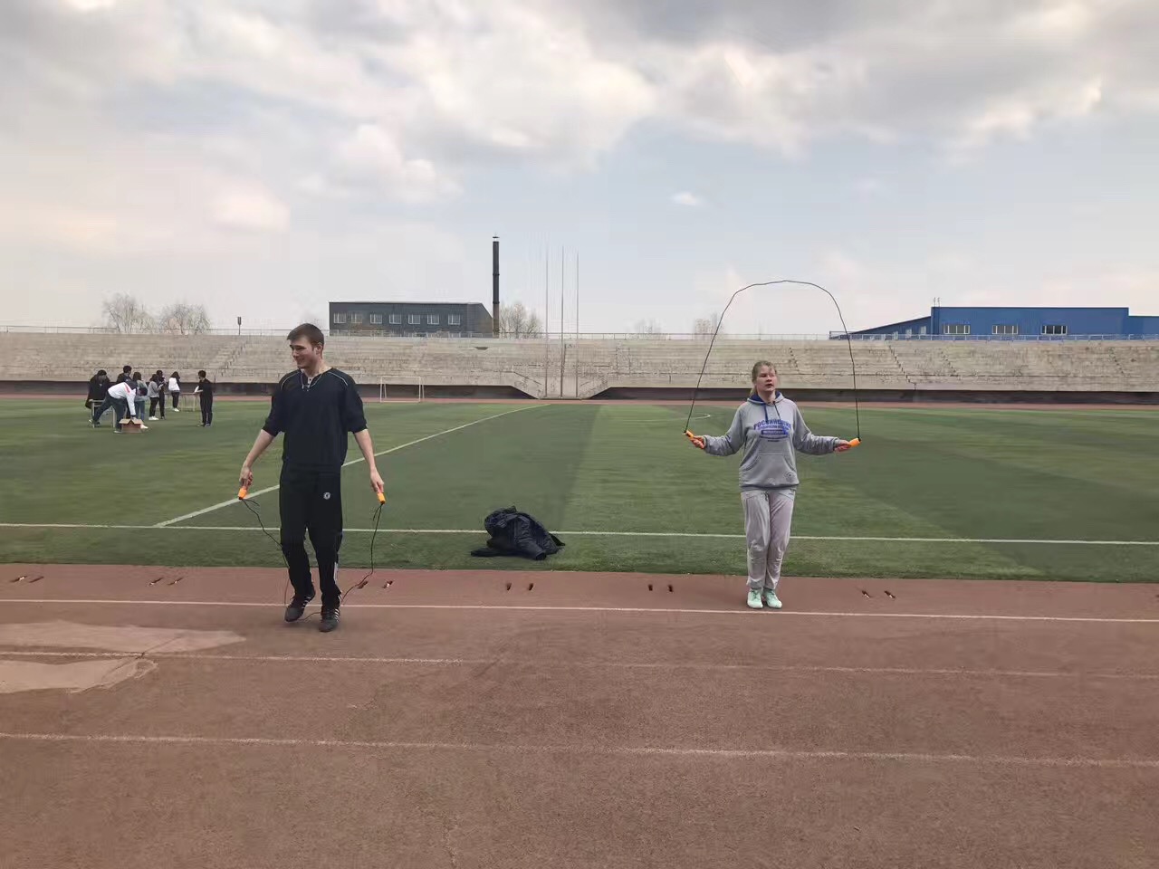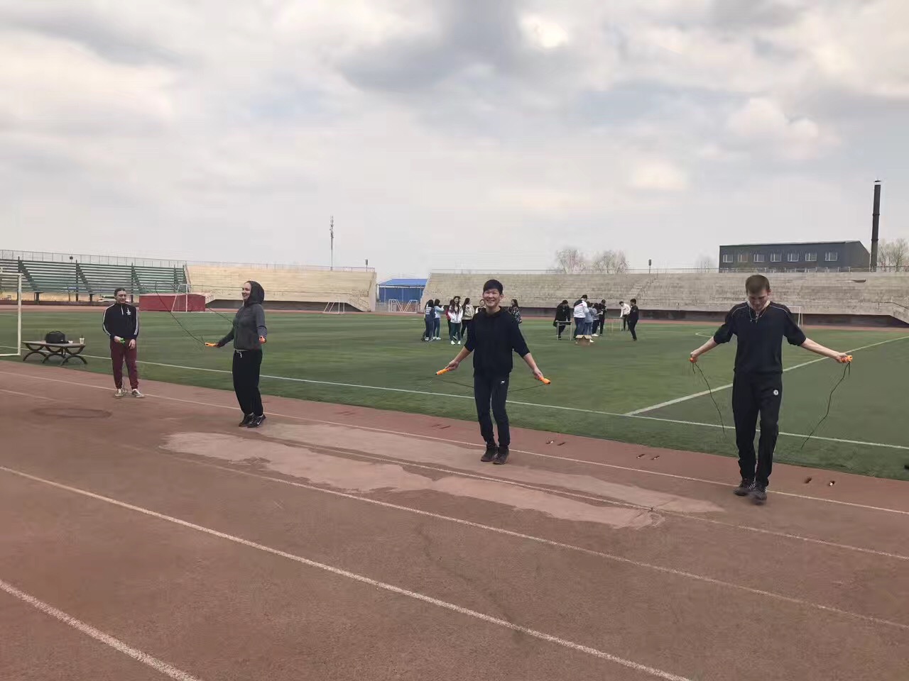 俄罗斯留学生参加伟德官网“首届单人单摇跳绳比赛”