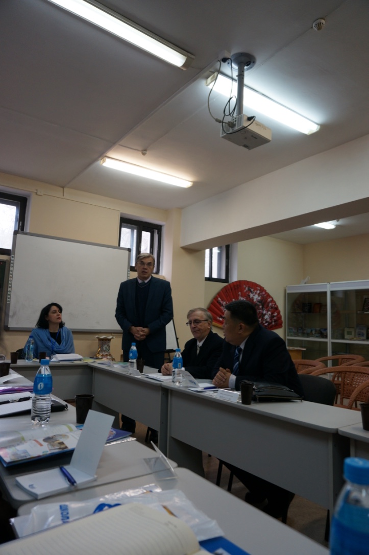4月26日,“对外俄语教学研讨会”正式召开,俄远东联邦大学乌苏里斯克分校教学副校长卡普拉诺夫及外事处处长巴秋科在会议上做了重要讲话,外语教研室主任卡尔迈科娃为各参会代表团介绍了俄远东联邦大学乌苏里斯克分校的学校概况及对外俄语教学的成果;乌苏里斯克分校的各分学院院长及参会的各代表团领导在会议上分别讲述了对外俄语教学的经验并提出一些问题和难点;学科项目带头人也分别介绍自己学科项目及对外俄语教学方法的改革并推荐了新的对外俄语教学教材。会议结束后,我院代表团一同参加了主题为“如何更好的开展对外俄语教学”的公开课展示。