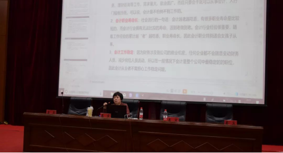 为了帮助即将进入实习期的大三学生明确就业方向,同时为大一学生们提供专业的职业规划建议,加强学生们对于财务管理专业的了解,经济管理学院于3月20日晚上在图书馆报告厅举行财务管理专业职业规划讲座,本次讲座邀请了黑龙江省立信会计事务所贾永虹老师担任主讲。