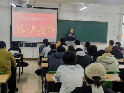 为顺应数字经济发展的新趋势,更好地满足社会对市场营销专业人才的新需求,以服务地方经济发展,促进学生就业为宗旨,践行校企共建课程目标,5月31日,经济管理学院市场营销专业校企共建课程《营销策划》开课,有幸邀请到资深创意策划人宫国辉先生到校为我院2021级市场营销专业学生进行营销策划重要指标及案例分析讲座。宫国辉先生围绕营销策划的三个标准进行展开,对明确的目标、创意为核心、可操作性等进行详细讲述,并通过分析营销策划成功案例帮助学生加深理解,用启发式的教学方法实现了与学生的高效沟通。整场讲座,宫国辉先生风趣幽默,现场气氛热烈,师生均受益匪浅。我院将持续推进校企共建课程的建设,加深与企业的合作,为培养高素质的应用型人才奠定基础。
