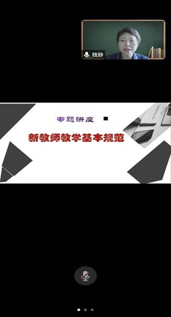 魏老师还对课件的制作提出了几点建议,如主要内容框架要与大纲授课计划一致、科学设计;如在课件中加入视频、图片或动漫等素材,视觉效果好,也丰富课件形式。同时,她还向青年教师阐述了教学总结的重要性及规范撰写方法。培训的最后,她强调,新教师要将知识点落地,站稳讲台,在形式和内容上不断完善,尽快转换角色,做到“自信”、“自如”、“自我”,真正融入教师角色,真正带领学生成长。