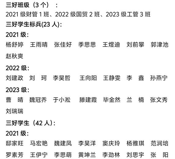经济管理学院2021至2023级在籍在校生共892人,根据评选比例,应评出三好班级4个,三好学生标兵26人,三好学生44人,优秀学生部标兵11人,优秀学生干部18人。
