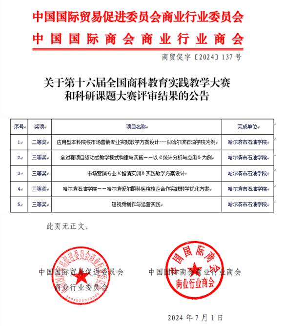近日,第十六届全国商科教育实践教学大赛圆满落幕,经济管理学院市场营销专业在学校及学院的大力支持下,以卓越的教学实践成果和深厚的专业素养,在众多参赛队伍中脱颖而出,一举斩获国家级二等奖一项和国家级三等奖四项。