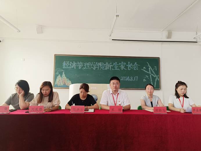 为进一步加强家校沟通,8月17日,经济管理学院召开2024年专升本新生家长会,经济管理学院院长任洪云、党总支书记宋旭、副院长郑彩飞、市场营销专业系主任刘威娜、财务管理专业系主任刘扬及专升本新生辅导员李金梅出席。