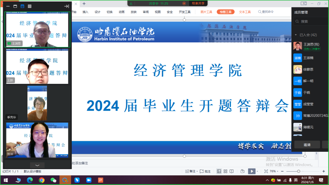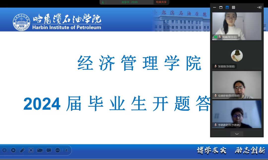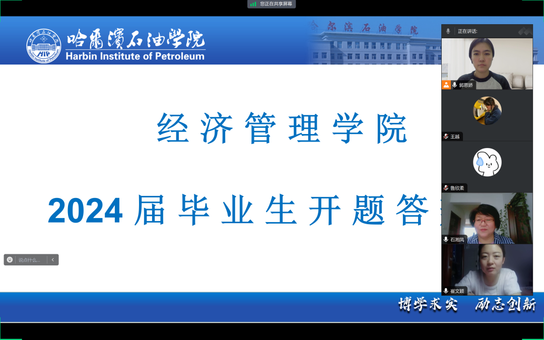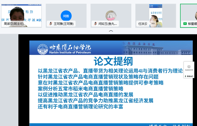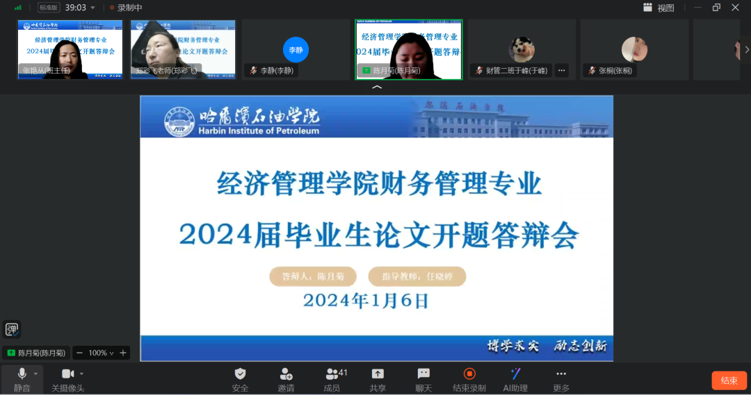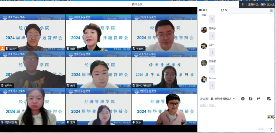 1月6日至7日,经济管理学院2024届毕业生论文开题答辩按照计划如期举行。本次开题答辩通过钉钉平台视频会议进行,我院全体教师和2024届毕业生共同完成此次线上开题答辩。