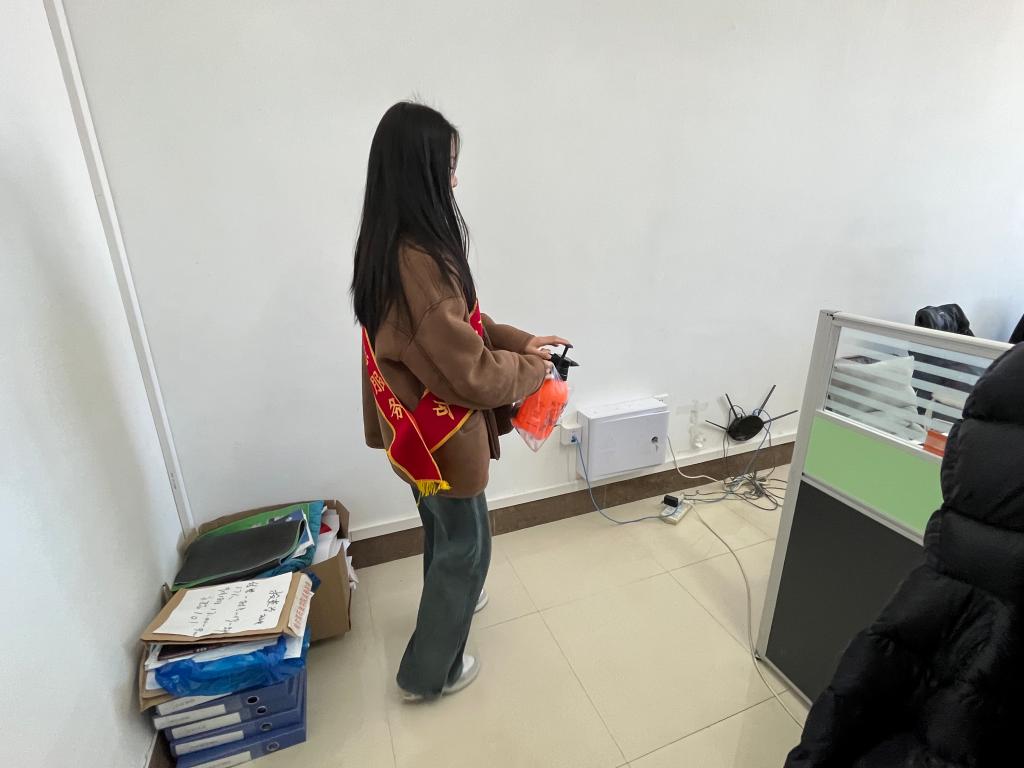 活动中,学生党员们分工明确,手持消毒喷壶,按照规范的消杀流程,对办公室和教室的桌椅、文件柜、门窗等进行了全方位的消毒处理。每一个角落、每一处把手,都不放过,确保消毒无死角。在大家的努力下,办公室和教室空气得到了有效净化,大家纷纷表示将继续密切关注病毒动态,严格落实各项防控措施,定期组织开展消杀工作,为师生创造一个安全、健康的工作和学习环境。