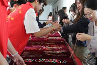 活动现场,我院青年志愿者们热情地忙碌着,他们将精心编织的五彩绳送到同学和老师手中,每一根五彩绳都承载着深深的祝福和关爱。我院青年志愿者希望通过赠送五彩绳营造欢乐、祥和的节日氛围,为同学们送上美好的节日祝愿,并传承佩戴五彩绳的美好习俗。