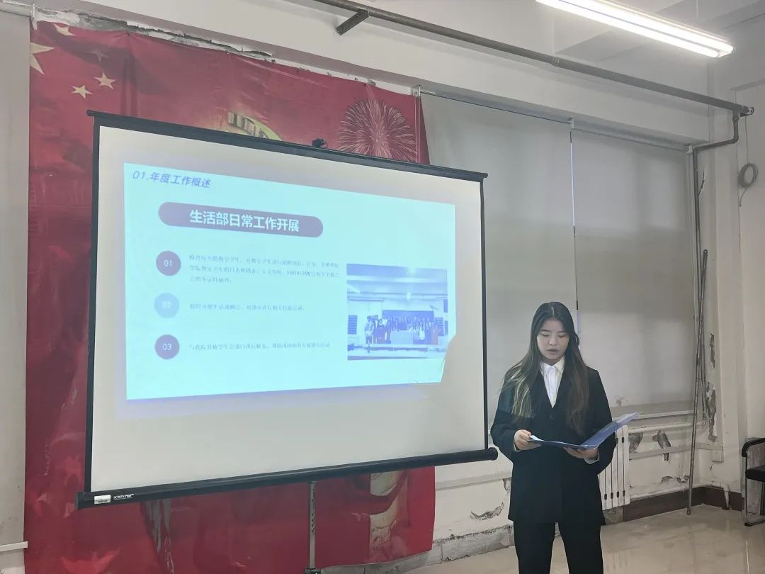报告会开始,首先由学生联合会执行主席和各部门负责人围绕2023年度负责工作开展情况、存在的不足、汲取的经验、下一年度的工作计划及今后的发展方向等内容依次进行述职。随后,吴东爽书记对学生联合会的工作情况、组织能力及取得的成绩给予了高度的肯定,并指出学生联合会是师生沟通交流的纽带,应充分发挥其作用,增强责任使命担当。最后,邱晨明老师表示学生联合会成员应全面发展,在校园内各项活动中发光发热,为学院建设贡献自己的力量。