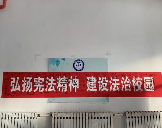 12月4日,经济管理学院在第二教学楼一楼张贴“弘扬宪法精神,建设法治国家”的主题条幅进行宪法宣传,并有学生自发的在条幅上签字,有效的提醒了同学们要树立宪法和法治意识,知宪法于心,守宪法于行。