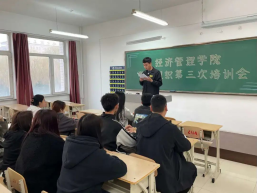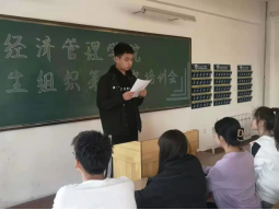 为深入学习习近平总书记致全国青联十三届全委会贺信精神,进一步加强学生组织的凝聚力,增进学生干部的归属感,经济管理学院于4月16日至4月20日期间组织全体学生组织干部在第二教学楼201室陆续开展三次培训会,第一次会议会议由学团办公室主任邱晨明主持,第二、三次会议由我院学生组织主席王忠锐、副主席盛馨雨和张世钰主持。