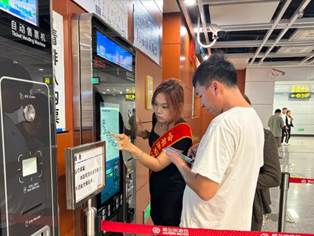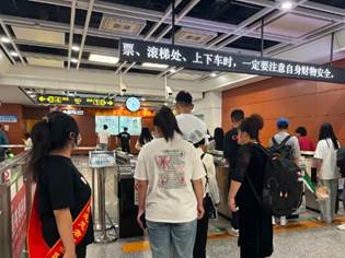 我院青年志愿者身着统一的志愿服装,忙碌在地铁站的各个角落,他们耐心地为乘客解答疑问,指导他们如何使用自动售票机和如何查询线路,时刻关注着乘客的安全,提醒大家在安全线内候车,有序上下车。遇到行动不便的乘客,他们会主动上前帮忙,协助其顺利进出站台,用自己的行动为乘客们的出行带来便利与温暖。我院学生志愿者表示:“作为一名大学生,能够为大家服务,感到非常自豪。通过参与地铁志愿服务,不仅锻炼了自己的沟通能力和服务意识,还为城市的发展贡献了一份力量。”