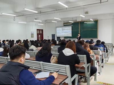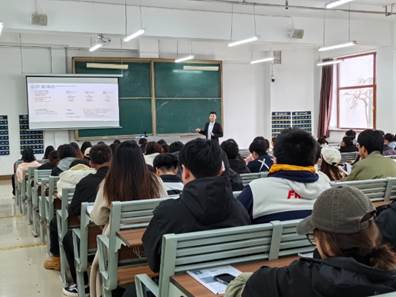 4月2日,好利来食品有限公司在第一教学楼104教室召开实习双选会。经济管理学院党总支副书记陈志勇、2021级辅导员助理付佳出席本次双选会。
