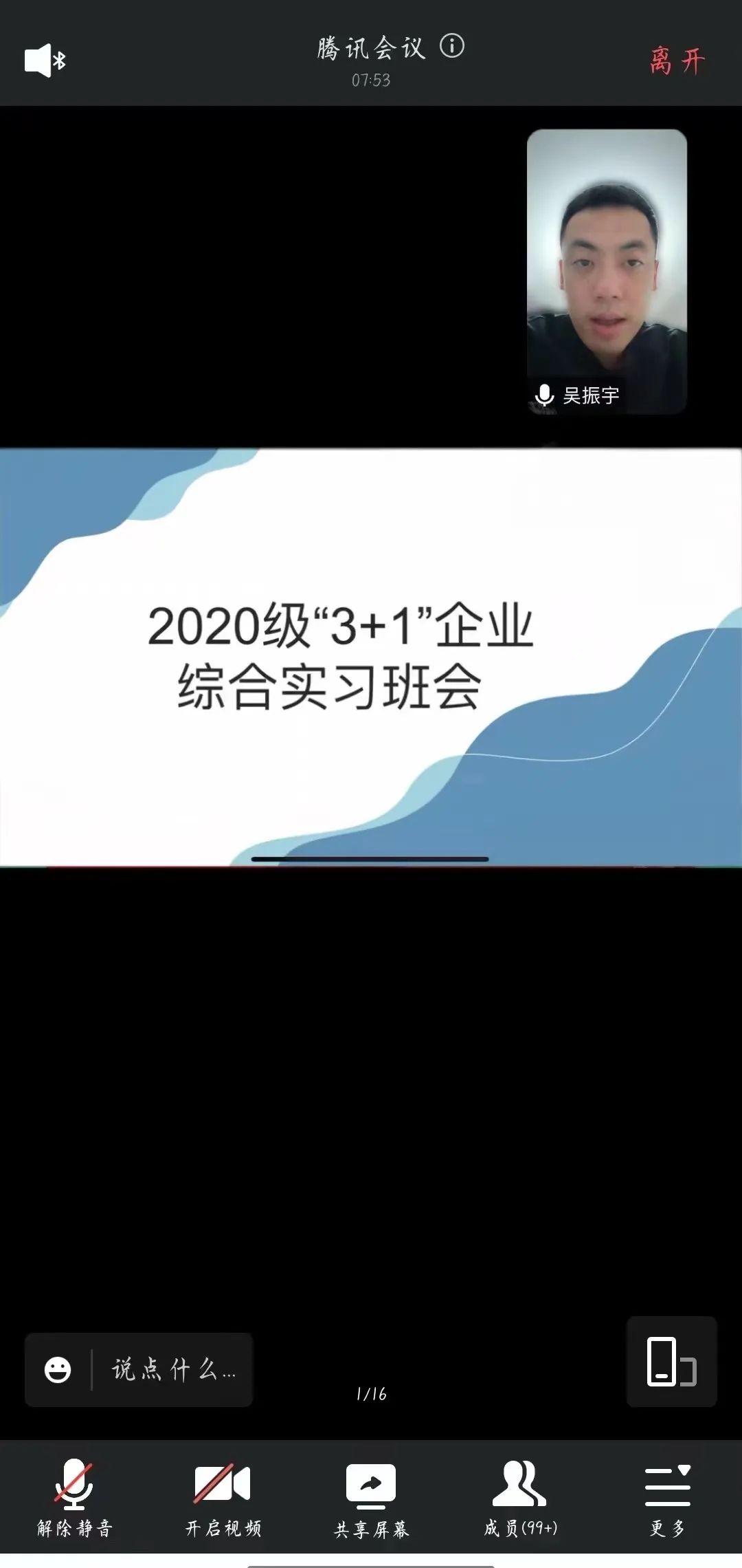 为增强我院2020级学生的实习安全意识,提高实习质量,11月17日,经济管理学院召开2020级学生“3+1”企业综合实习安全教育主题班会。本次班会由我院2020级辅导员主持,我院2020级全体学生参会。